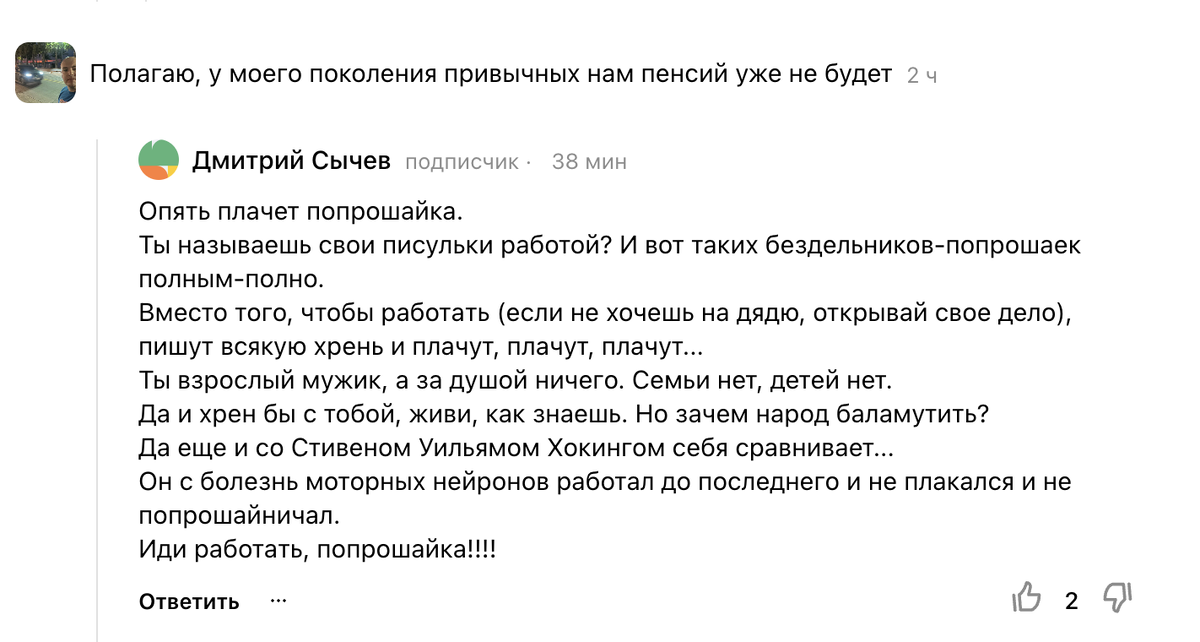 Но при этом комментаторы зачем-то читают мои статьи (видимо, все поголовно, только что вернувшись с шахты) и вступают в диалог, оставляя такого рода комментарии. То есть, они взаимодействуют с моим продуктом.