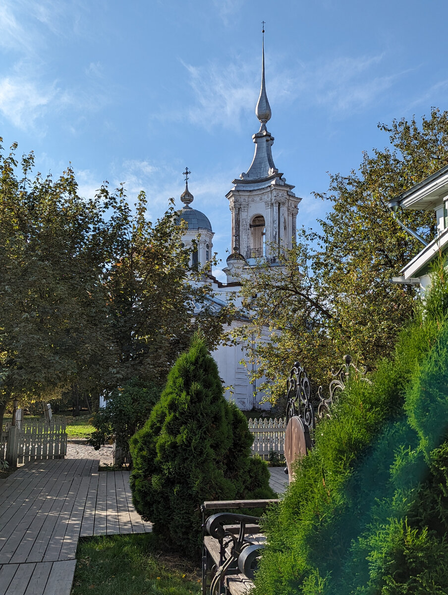 А мне понравилась затерянная церковь Варлаама Хутынского, среди резных домиков. У нее довольно необычная архитектура.