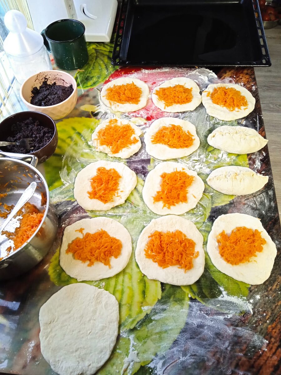 Особого рецепта нет. Тесто пирожковое. Начинка в чистом виде как есть - морковь сырая на тёрке и чуть с сахаром, а черёмуха перекручена с сахаром ещё в свой сезон. Яйцо отварное, лук - батун.