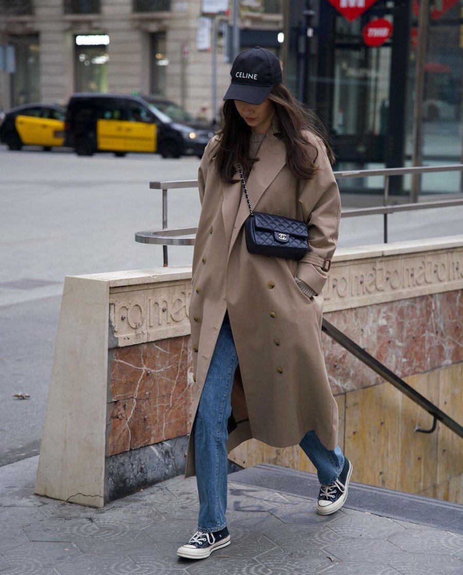 Зимой мы идем еще дальше и сочетаем бейсболку с согревающим джемпером-водолазкой, широкими брюками из шерсти и длинным пальто. Чтобы ноги не мерзли, мы также выбираем обувь с толстой подошвой - практичные и стильные одновременно.