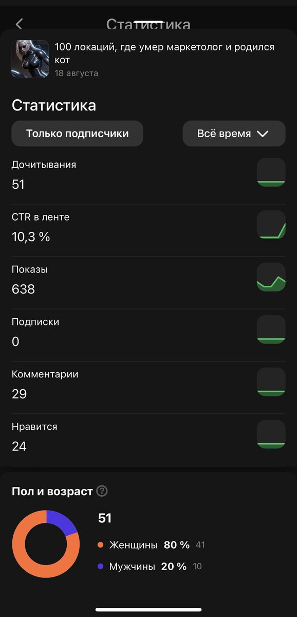 Пришло время возвращаться, и я пока не знаю, каким контентом наполнять блог — муза покинула, но и ныть о своих проблемах надоело 😅 Решила для начала разобрать две свои странненькие статьи, которые выпускала ради эксперимента. Итак, встречаем: 1. 2. Первая статья Смысл публикации в том, чтобы взять 3 кита успеха: стр, дочитки и картинку, и разогнать алгоритмы. Собственно, сама статья о том, как это работает. Кому лень читать, вот пара технических моментов: Идеальная схема 👆 В такой связке все должно было четко сработать, как перекликающиеся мотивы в дизайне. Но то ли алгоритм понял, что его используют, то ли девушка оказалась слишком вызывающей, но статья моментально схлопотала откровенный контент. После обращения бан сняли, что видно на графике. Показатели пошли вверх, но это уже не то пальто, момент упущен и я не исключаю ручное ограничение. Но даже после бана эта статья дала довольно неплохой результат на фоне нынешнего Дзена и принесла аж 5,75₽. Вторая статья Прос