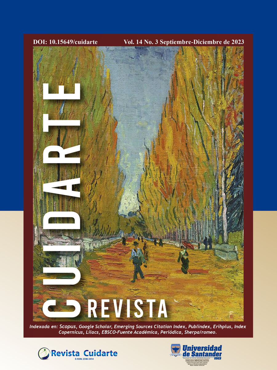 Уважаемые коллеги, доброго времени суток! Представляем вам колумбийское научное издание Revista Cuidarte. Журнал имеет в основном четвёртый квартиль, но рассматриваемая нами область находится во втором, у него открытый доступ, его SJR за 2022 г. равен 0,13, печатный ISSN - 2216-0973, электронный - 2346-3414, предметные области - Младшие медсёстры, Сестринское дело (общие вопросы), Медицинский и хирургический уход, Общественный уход и уход на дому, Материнство и акушерство, Реанимация и интенсивная терапия, Семейная практика. Вот так выглядит обложка: Редактором является Клаудиа Консуэлло Торрес Контрерас, контактные данные - clau.torres@mail.udes.edu.co, revistacuidarte@udes.edu.co. Это международный научный журнал с открытым доступом, поддерживаемый внешними коллегами. Мы являемся изданием, которое раскрывает научные знания в области сестринского дела и других наук о здоровье посредством публикации исследовательских статей, систематических обзоров и мета-анализа, затрагивающих интере