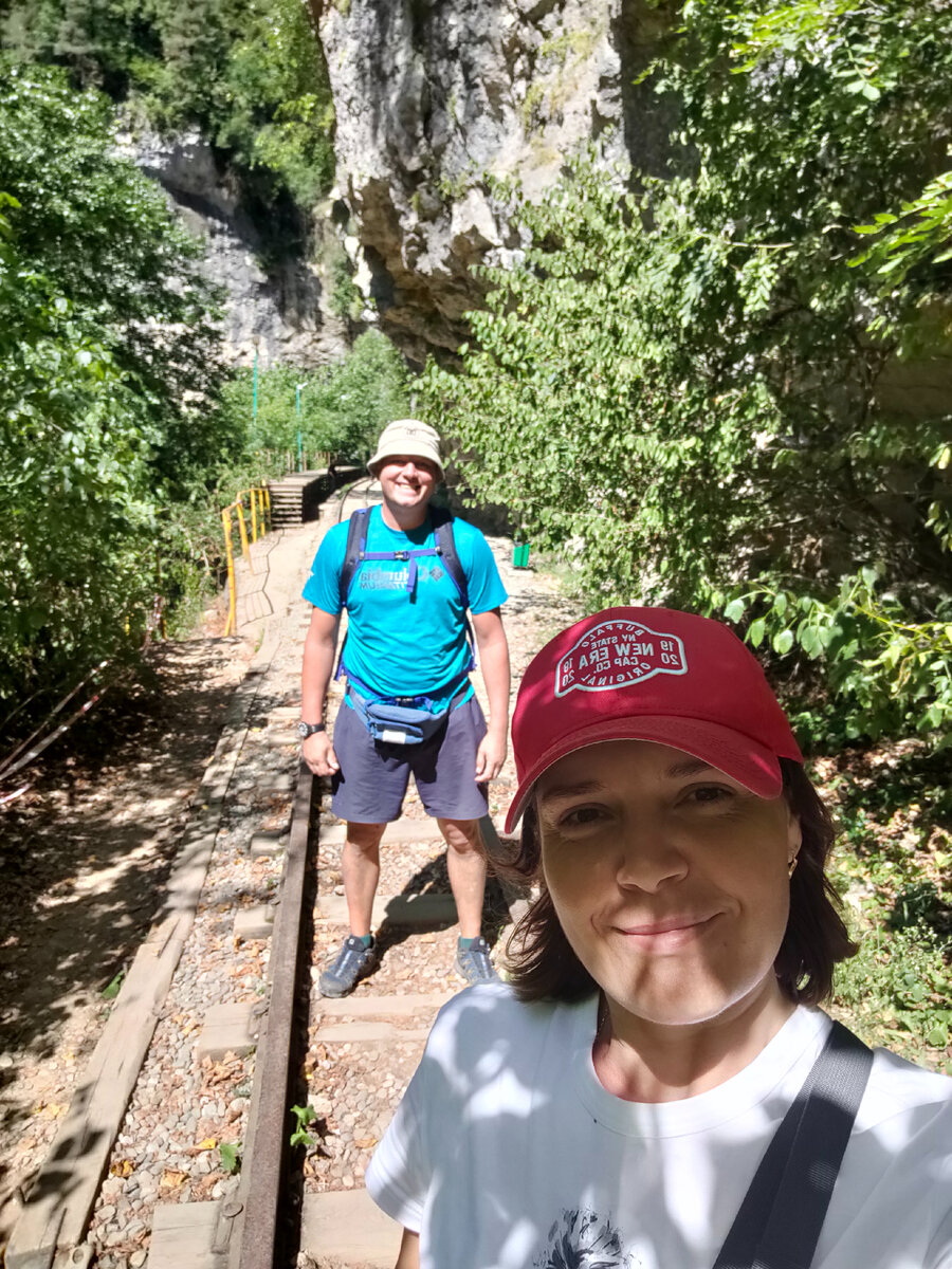 Ещё один день, и мы в Гуамском ущелье. Имейте ввиду, что пешком там можно погулять или во вторник, или после 7 вечера. В остальное время только на паровозике туда-обратно (взрослый билет 600руб).Конечно, паровозик проходит лишь часть ущелья в течение 20-30 минут.Далее можно погулять уже пешком. Поездку сопровождает звуковое сопровождение (экскурсия). А вообще, можно и пешком из Мезмая дойти, но это около 10 км пути в одну сторону, где самые красоты начинаются именно в ущелье. Решили не париться, а доехать до Гуамки из Мезмая на авто. Кстати, Мезмай -это небольшой поселок и пыльными каменистыми "дорогами". Пара-тройка частных магазинов, работающих до 7-8 вечера и одно место, чтобы заказать пиццу. И все. Никаких тебе кафе, шашлык-машлык и прочие вкусности. Из развлечений купания в запруде горной речки. А вот гостевой дом, где мы останавливались -Виллалива-отличный,рекомендую.