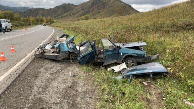 На Алтае пьяный водитель ВАЗа устроил массовое ДТП и превратил машину в груду металла