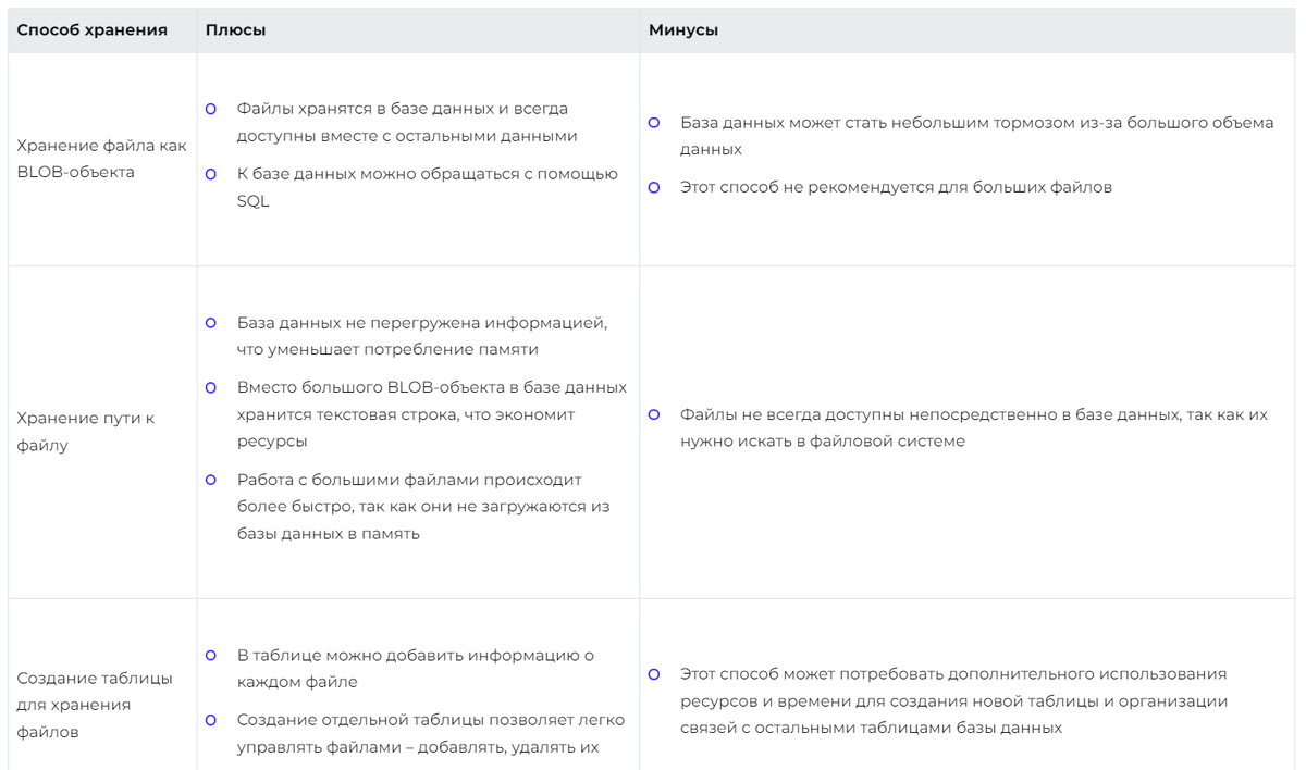 - Возможность хранить файлы вместе с соответствующими данными в одной базе данных, что делает работу с этими данными более удобной и организованной.