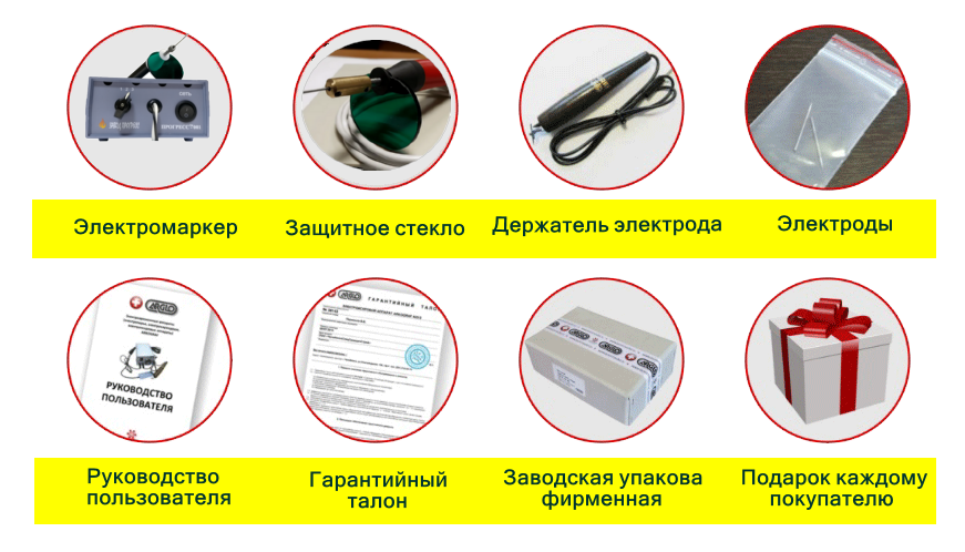 Электромаркер прогресс-021 Электромаркер прогресс-021 (тм прогресс) ZavodProgress Электромаркер прогресс-021 (тм прогресс) предназначена для нанесения ручным способом цифробуквенной информации на различных металлах произвольной... Электромаркер прогресс-021 (тм прогресс) предназначена для нанесения ручным способом цифробуквенной информации на различных металлах произвольной конфигурации вместо механического клеймения. Маркер состоит из блока питания и электровибратора со сменным наконечником из стальной проволоки. ЭИМ эффективен при маркировке изделий из: титана, циркония, сталей (нержавеющей, легированной, инструментальной, углеродистой), меди и алюминия и их сплавов, белой жести, оцинкованного железа и т.п. Собственное производство Данная модель ПРОГРЕСС-021 относится к области электрофизических методов обработки металлов, а конкретно, к технологии обработки металла воздействием электрического тока высокой плотности, и может быть использована для увеличения твердости, жаро- и износос