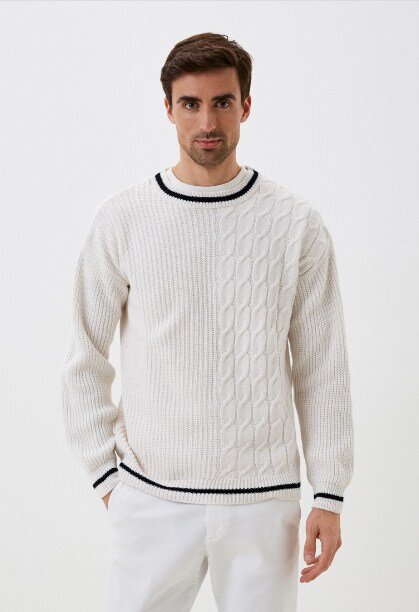 Добрый день, Дорогие рукодельницы! Поступил запрос: нужна подборка с мужскими джемперами. Поэтому давайте сегодня посмотрим брендовые новинки для мужчин, которые можно повторить спицами. Если вяжете мужчинам, то обязательно учитывайте фигуру. Немного советов для вязания мужских изделий. Если у мужчины большой живот: А теперь давайте посмотрим подборку с мужскими моделями. Если эта статья понравится многим, то добавлю продолжение!) №1 Этот джемпер связан из 100% акрила, а стоимость его 4700р. Думаю за такие деньги можно купить пряжу с хорошим составом и связать такой же. Данная модель мне очень понравилась, смотрится стильно и аккуратно. Одна половина джемпера вяжется полупатентной резинкой, а вторая половина жгуты из 10 петель. Спинка и рукава вяжутся тоже полупатентной резинкой. По низу рукавов и горловине резинка: 1 лицевая, 1 изнаночная. Горловина - кетлевка со сменой цвета: 5 рядов белых, 5 черных, 5 белых. Вяжется джемпер свободного кроя и со спущенными рукавами. №2 Бренд O
