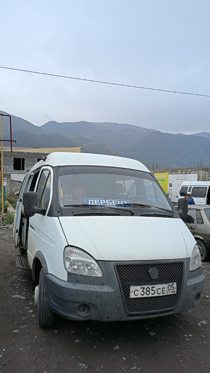 Прожив три ночи в селе Курукал, в Дербент нам пришлось возвращаться на маршрутке. Из Курукала до Ахты нас доставил уже знакомый лезгин, который возил вчера в Смугул. Если бы у нас не было чемоданов, могли бы уехать на машине в Дербент с местными, которые отдыхали тут. Они очень хотели нас подвезти, наверное не меньше, чем мы сами. Но вместиться не получилось. Автовокзал в Ахты это всего лишь место, где стоят маршрутки и есть навес со скамейками. И даже висит расписание. Но совсем не факт, что ему можно верить. Наша отправилась в 10:40. Они на самом деле идут по мере наполнения Мы свою "наполнили" нашими вещами. Ну а пассажиров ожидали эти 40 минут. Наш водитель сказал, что из Ахты маршрутки ходят каждый час до 14 часов. Ехать в маршрутке оказалось по времени не дольше, чем на машине. Хотя маршрутка и делает остановки, а машина нет. Просто водители здесь на маршрутках ездят быстро. А ещë эти водители играют роль курьеров. Наш брал на остановках у людей письма, пакеты, с