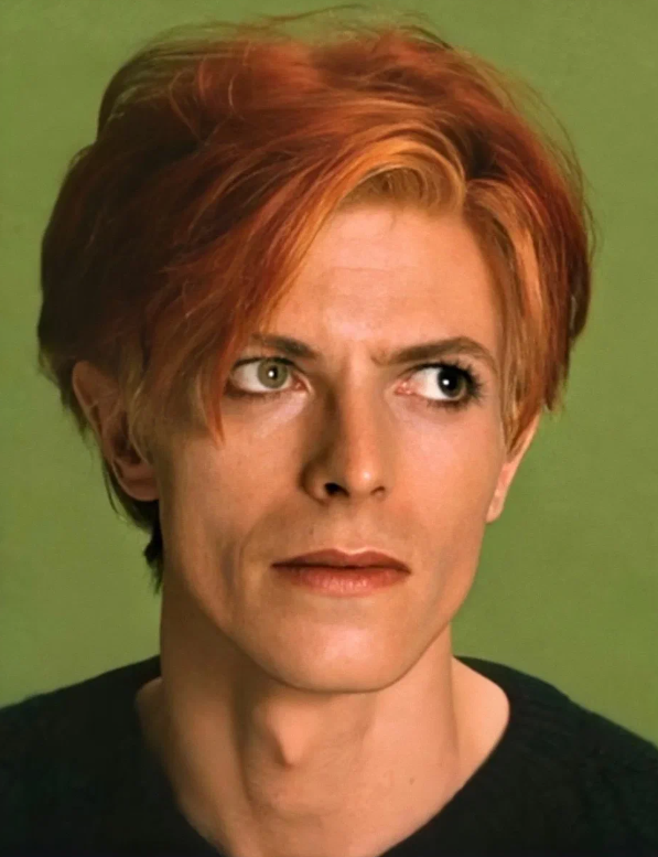 Да, про глаза. Они у него действительно разного цвета. В детстве его ударил друг, да ударил так, что травмировал сетчатку глаза, и постепенно глаз стал менять цвет - становиться зеленым (до этого оба были темно-голубые) и перестал реагировать на свет (зрачок всегда широкий). И, кстати, на этот глаз Боуи стал дальтоником. Да, уж так получилось, что один глаз у него различал цвета, а другой видел только черно-белые изображения.