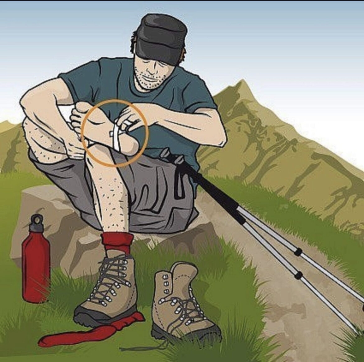 Пеший поход – это большая нагрузка на ноги. Любая случайная складка на носках или обмотках, неправильная шнуровка ботинок и в результате имеем мозоли. Дальнейшее движение будет все больше напоминать пытку. КАК ИЗБЕЖАТЬ МОЗОЛЕЙ И ПОТЕРТОСТЕЙ: Практика показывает, что ноги чаще всего стираются при опрелостях или при неправильно подогнанной обуви. Чтобы предохранится от потертостей и мозолей на марше, обязательно следите за тем, чтобы обувь была разношенной, сухой, без выступающих внутрь неровностей. Важным моментом для туристов является уход за ногами. В целях ухода старайтесь каждый день дезинфицировать ноги, а особенно складки между пальцами борной кислотой или раствором из 0,5% марганцовки и 2-3%формалина. Дезинфицирующими свойствами обладают так же мох сфагнум, растение иван-чай (кипрей) и порошок, сделанный из гриба-трутовика. Обязательно следите за чистотой и состоянием ногтей на ногах. ЛЕЧИМ НОГИ Чтобы вылечить мозоль или потертость в походных условиях восполь