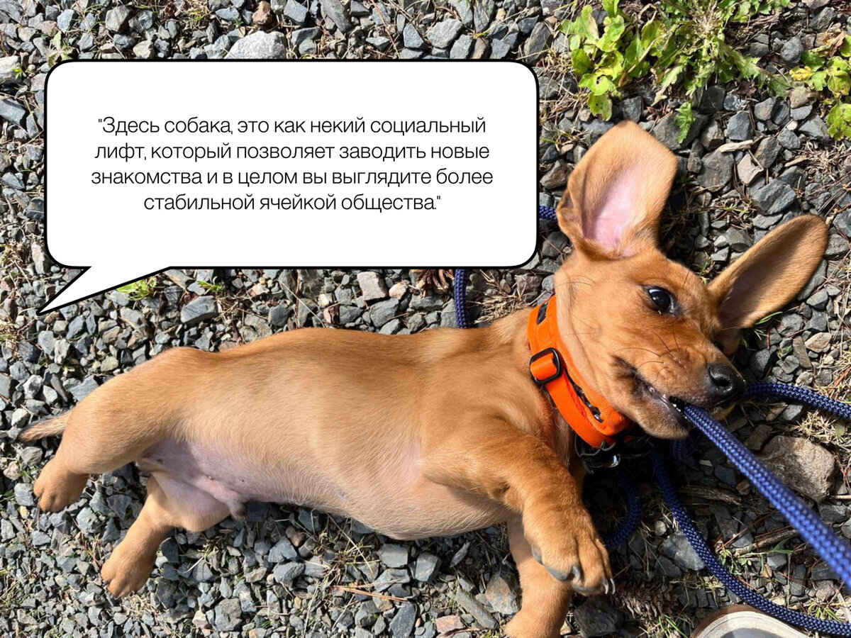 Здесь собака, это как некий социальный лифт, который позволяет заводить новые знакомства и в целом вы выглядите более стабильной ячейкой общества.