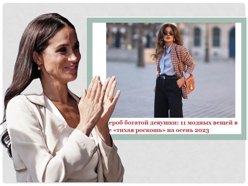 Печально, что из всех 13 образов, которые на той неделе показала Меган, нет ни одного такого, которым можно было бы залюбоваться. Гардероб был похож на калейдоскоп: ярко, много, неряшливо, не сидит, не идет. Это был гардероб актрисы, на гардероб герцогини он не потянул. Чтобы составить изысканный и элегантный гардероб герцогини, нужно учитывать последнюю модную тенденцию – а именно: стиль «тихая роскошь».