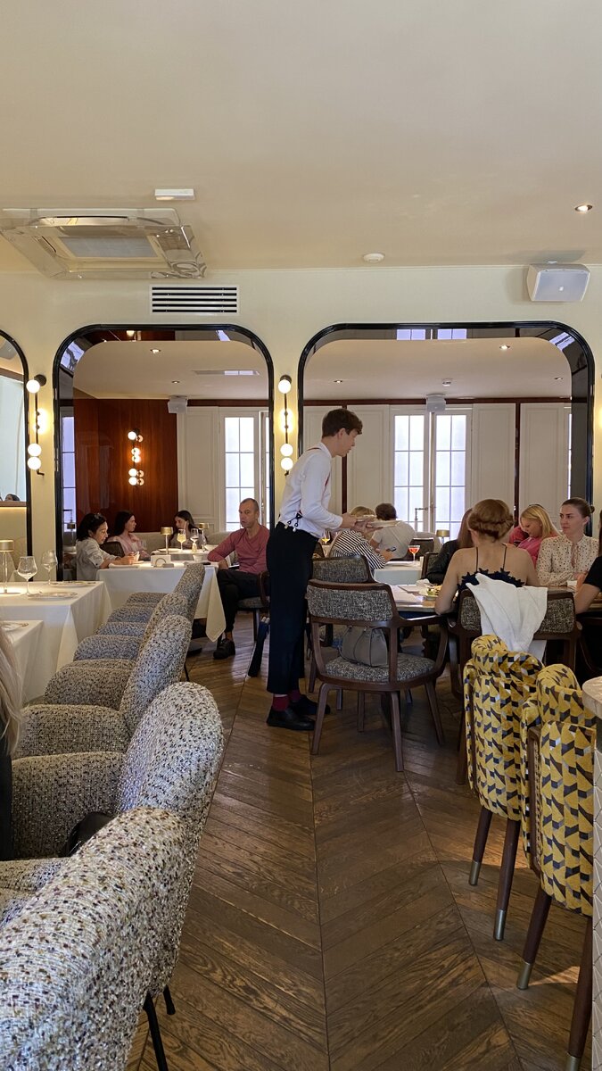Обязательно посмотрите видео обзор этого ресторана (а также многих других) Интерьер ресторана объединяет в себе лучшие эпохи в истории Франции: утонченный, необычный, иногда эксцентричный. Здесь идеально сочетаются элегантность и внимание к деталям. Белые накрахмаленные скатерти, приглушенный свет, мягкие нюдовые оттенки, подчеркнутые яркими акцентами. Круассан с пастрами и трюфельным бри - 790 рублей - для меня это очень сытный завтрак. В составе: пастрами из говядины, соус Порто, страчателла, лук сибулет, сыр бри, сыр креметте, паста трюфельная, масло трюфельное, трюфель черный. Сочетание мяса и сладковатого лука с нежным сыром - волшебное! Сам круассан свежайший с хрустящей корочкой 🤤 Рекомендую Заварное кольцо Бенедикт с лососем - 950 рублей. В составе: тесто заварное, крем сырный, гуакамоле, лосось слабосоленый, яйцо куриное, икра красная, лук сибулет, огурцы, микрозелень, масло оливковое, фисташка. Здесь более классическое сочетание всего. Тот же круассан с лососем и сырным к