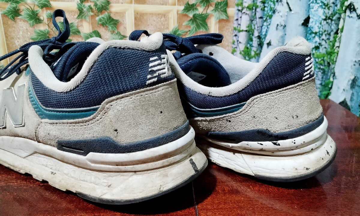 Здравствуйте, друзья! Вот такие кроссовки. Их нужно очистить от — скорее всего — битума и поставить задники. Вот небольшое видео до клеанинга, там то же самое, но видео. Достаём шнурки и стельки — для них разные процессы. Для начала применим обычную пену. Смотрим что получится. Высушили. Пыль с верха отмылась вся. С подошвы мелкие капли битума стёрлись тоже. Но подошва уже изменила цвет в этих местах, пожелтела — битум здесь был долго. С верха уберём битум бензином. Вот как это происходит: А вот сколько всего для этого пригодилось. А вот жёлтые пятна на подошве попробуем применить Жидкость №3, она нужна для глубокой очистки перед покраской. Нет, пятно не очистилось. Что ж, в мастерской наждачкой аккуратно снимем этот слой. Всё равно в мастерской ставить мягкие задники. А верх ещё обработаем стимганом. Высушим. Теперь замшу нужно плотно пропитать водозащитой. Не забываем о стельках и шнурках. Вот, В добрый путь! Всем спасибо! Студия: https://shuzclean.ru/