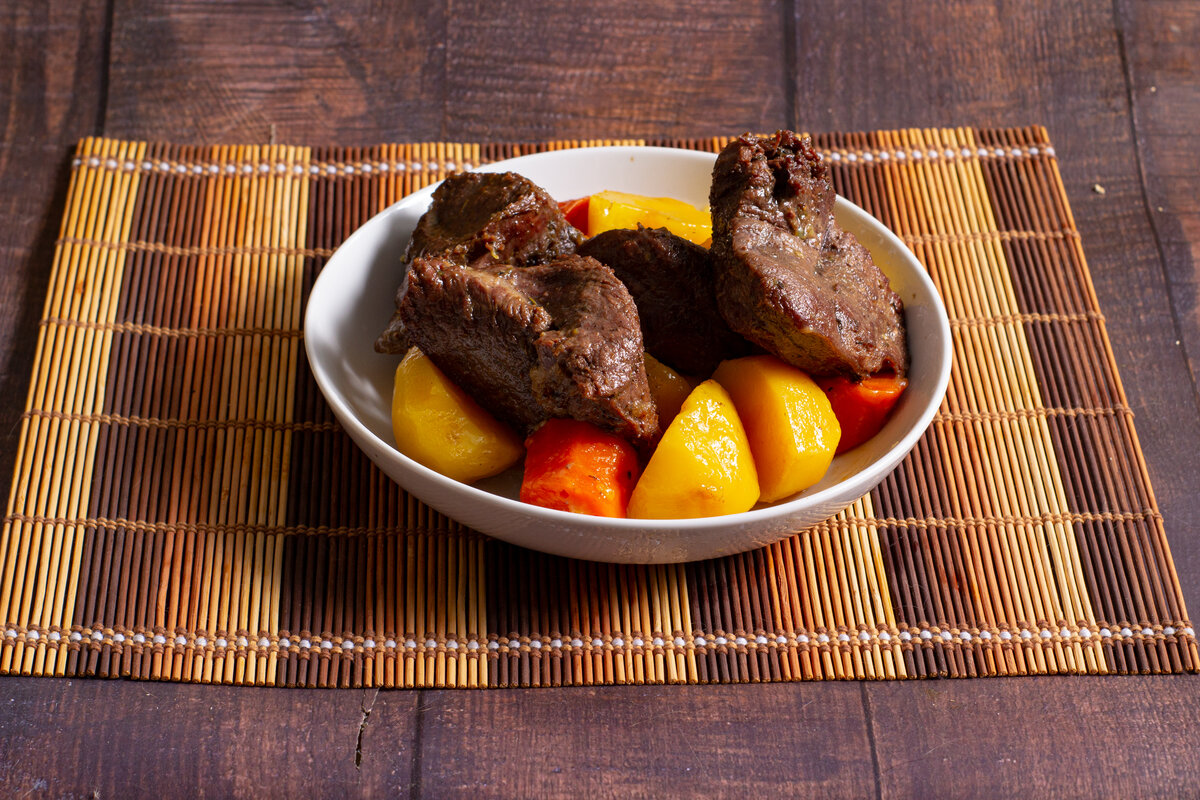 Подал детям, они только удивлялись, как вкусно можно сделать из самых простых продуктов. Картошка в мясном соке приготовилась, мясо на пару, мягко, не жирно. Я не знаю, что тут ещё нужно. Даже соусы не требуется. Просто концентрация всего вкусного. Моя татарская половина в восторге, че уж там. Да и белорусская не обижена. Сижу, жую. И, в принципе, можно такое делать не только из конины, подойдёт и нежная говядина, и баранина. Да и свинина подойдёт наверняка.