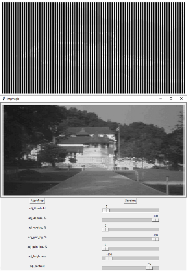 В попытках восстановить большинство картинок число параметров (ползунков) в программе в конечном итоге достигло 7, но некоторые картинки так и не удалось восстановить даже с таким большим числом параметров.