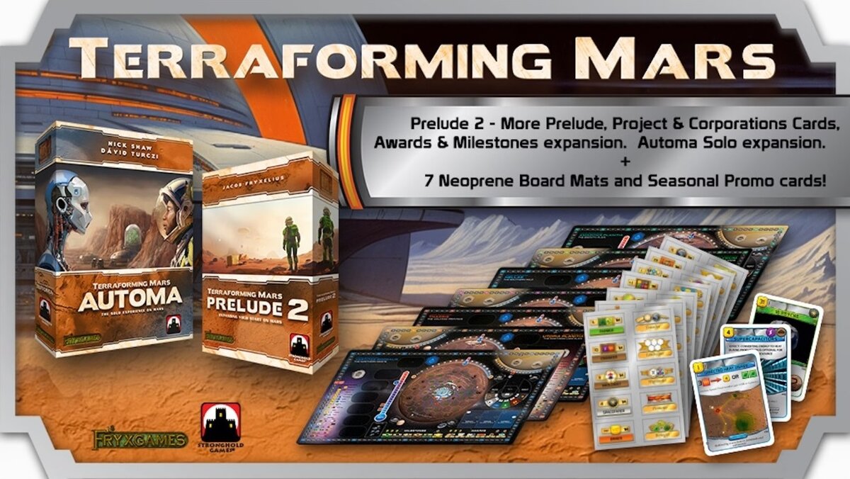 - дополнение "Prelude 2" (пролог 2), как видно из названия- это скорее дополнение для дополнения "пролог", которое добавит новые карты прологов и карты прологов с активными действиями (как синие карты) 25 штук, 5 карт корпораций, а ещё 24 карт проектов;