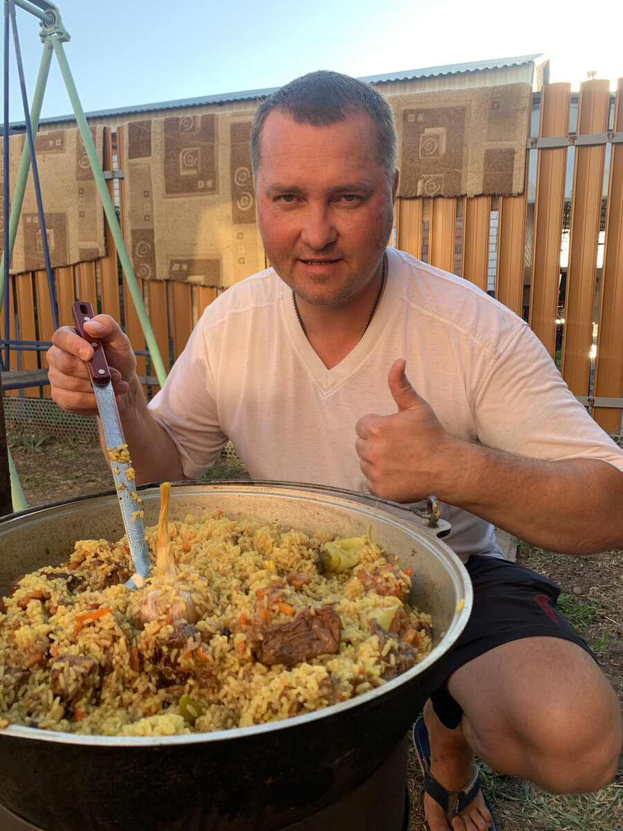Обратной связью и рецептами делятся наши подписчики. Не так давно в нашей газете вышел ряд публикаций о том, какими вкусными получаются блюда, приготовленные в казане. Двойное удовольствие, когда пиршество проходит на природе и тройное – когда в компании близких и друзей. Неустанно радуемся обратной связи от читателей и подписчиков, тем более, если они сопровождают свои рецепты памятными снимками и личными советами. Делимся рецептами фирменных блюд Андрея Елецкого. Главное составляющее успеха, как уверяет читатель, – готовить с душой и хорошим настроением. Узбекский плов в казане Ингредиенты: • 1 кг длиннозёрного риса • 1 кг говядины • 1 кг моркови • 300 мл растительного масла • 4 небольшие луковицы • 2 головки чеснока • 1 ст. л. сушёного барбариса • 1 ст. л. зиры • 1 ч. л. семян кориандра • соль Приготовление. Рис промываем холодной водой, меняя её несколько раз. Последняя вода после промывки должна остаться совершенно прозрачной. Говядину нарезаем кубиками. Моем и чистим овощи. Лук н