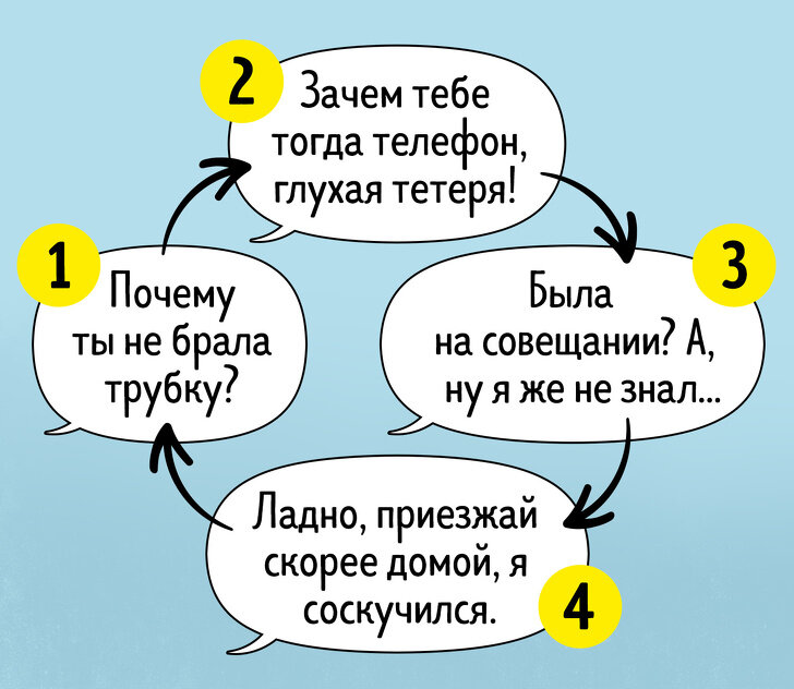 А в ответ далее продолжают лететь запутанные двусмысленные объяснения, ваше чувство вины растет, вы уже сами себя начинаете обесценивать. А уж про дальнейшее и постоянное обесценивание в другой стороны и говорить не приходится. Вы оказываетесь в зависимости от абьюза. Такой вот складывается порочный круг. Петля абьюза.