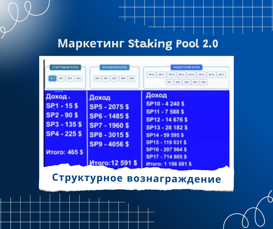 🔻Структурное вознаграждение, распределенное на три уровня в глубину.