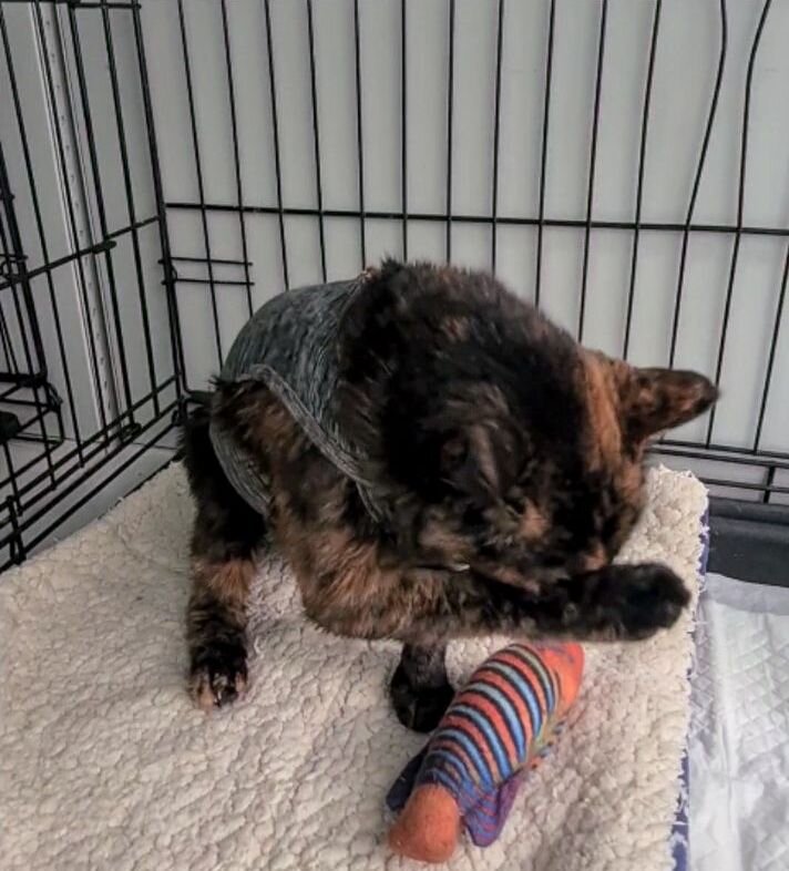 Кошка Чернушка ещё в клинике после операции, и речь о выписке пока не идёт