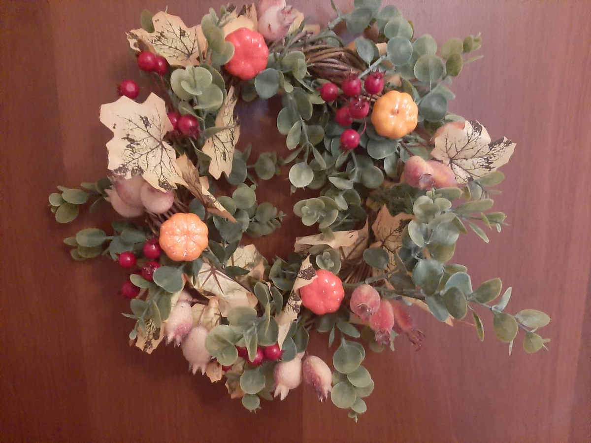 Начну с хенд мейда. В прошлой статье в рубрике Женский клуб показывала вам веночки. Тот, что висел на двери я немного доделала. Добавила лиану из Фикса. Стал он попышнее. Так мне больше нравится.
