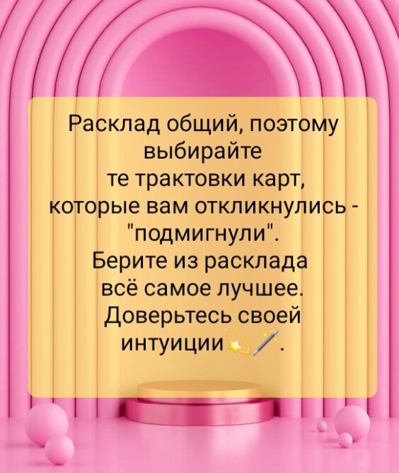 Приветствую Вас Богини! Этот расклад расскажет вам о том, что скоро будет в вашей жизни, что будет в любовных делах, финансовых и вообще, что нового предвидится. Самое главное - это ваше настроение и настрой. На что вы обращаете своё драгоценное внимание, то и приходит в вашу жизнь. 🧘♀️Расслабьтесь, пусть все лишние мысли уйдут. 🔮Расклад: Вы почувствуете в себе силу, ваша энергия пробудится. Ваше желание исполнится. Молодой мужчина, страстно в вас влюблённый - будет проявляться, ухаживать за вами. Вы заметите, что сильно нравитесь ему. Он будет звонить вам, писать, предлагать втретиться. С финансами всё наладится. Вы будете чувствовать себя комфортно. Будете делать хорошие покупки, баловать семью и себя - на всё будет хватать. На работе всё будет спокойно и хорошо. Очень возможно, что мужчина вам сделает предложение или предложит съехаться, жить вместе. Мужчина будет делать вам подарки. Ваше сердце успокоится. То о чём вы волнуетесь сейчас - наладится, всё будет