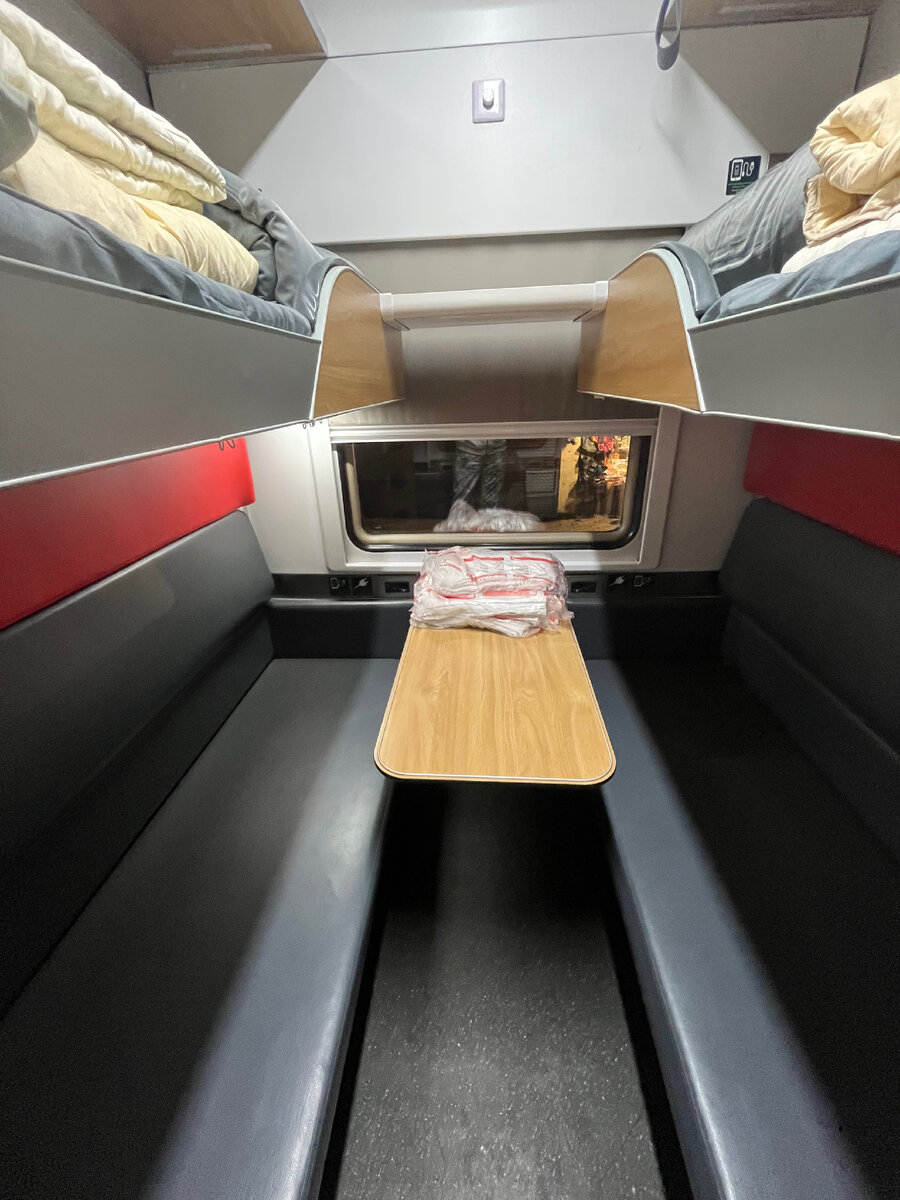 Я уже знала, что в поезде #135 Махачкала-Санкт-Петербург есть несколько новых вагонов, наши путешественницы когда ехали сюда, они попали в хороший вагон. Я сюда ехала в обычном(( И вот при посадке в обратную дорогу я захожу в вагон и вижу: Ура! Вот он красавчик! С новым дизайном, в серо-красных цветах РЖД. Я когда-то ехала в таком новом вагоне купе, а сейчас вот в плацкартный такой попала) Везучая я в этом путешествии👌😀 Здесь везде перегородочки есть, получается так уютненько. И на верхних полках в районе головы тоже есть перегородка, лицо наверное не будет видно, когда человек спит. Также для верхних полок есть небольшой столик, ту же воду поставить, или телефон положить. Вообщем культура идет в массы😊👍 Сейчас голову подняла, и вижу крючки даже есть: Значит предусмотрены какие- то шторки, но их самих нет. Если занавеситься ото всех, вообще будешь ехать как в домике. Но я так не люблю, никогда не занавешивалась ни от кого простынями, как это уже часто случается. Навешают их