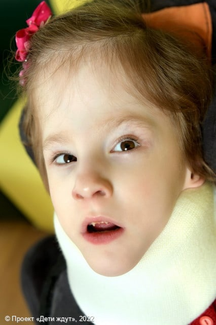 Александра - ласковая, спокойная девочка. Знакомым взрослым она улыбается, на новых людей реагирует спокойно. Саша любит внимание взрослых, когда с ней разговаривают и играют (рассказывают потешки и сказки, играют пальчиками). Обращённую речь девочка понимает на интонационном уровне, на ласковое обращение она улыбается. Сашуля реагирует на своё имя, активной речи у нее нет. Девочка самостоятельно не передвигается, не сидит, не ползает и не переворачивается, непродолжительное время она сидит с фиксацией в кресле-коляске. Саша реагирует на голос взрослого, кратковременно фиксирует взгляд на предмете или лице говорящего. Девочка прислушивается к музыкальным игрушкам, поворачивает голову в сторону источника звука. Саша любит проводить время в специально оборудованных манежах в холле и спальне жилого корпуса, благодаря чему у девочки изменяется угол обзора и появляется возможность понаблюдать за происходящим вокруг. Сашенька с удовольствием слушает сказки, детские песни и смотрит детские те