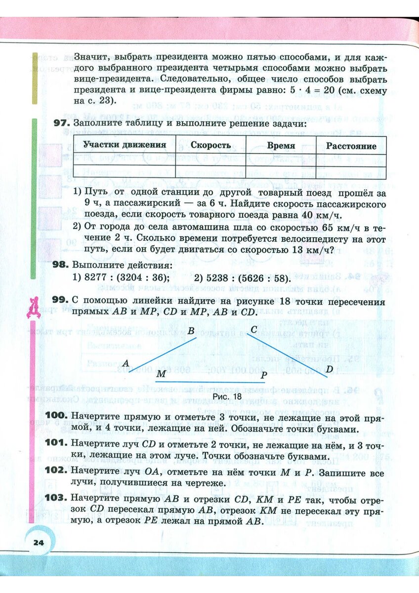 На рисунке 18 отображаются 3 прямые. Но они между собой не пересекаются. При этом в задаче указано найти точки пересечения. Авторы видимо подразумевают что все ученики телепаты и должны читать их мысли) нужно виртуально продолжить линии. Приложите линейку к каждой из линий, и карандашиком продолжите их, продлите. В таком случае эти линии начнут пересекаться друг с другом, тогда вы сможете найти точки пересечения.