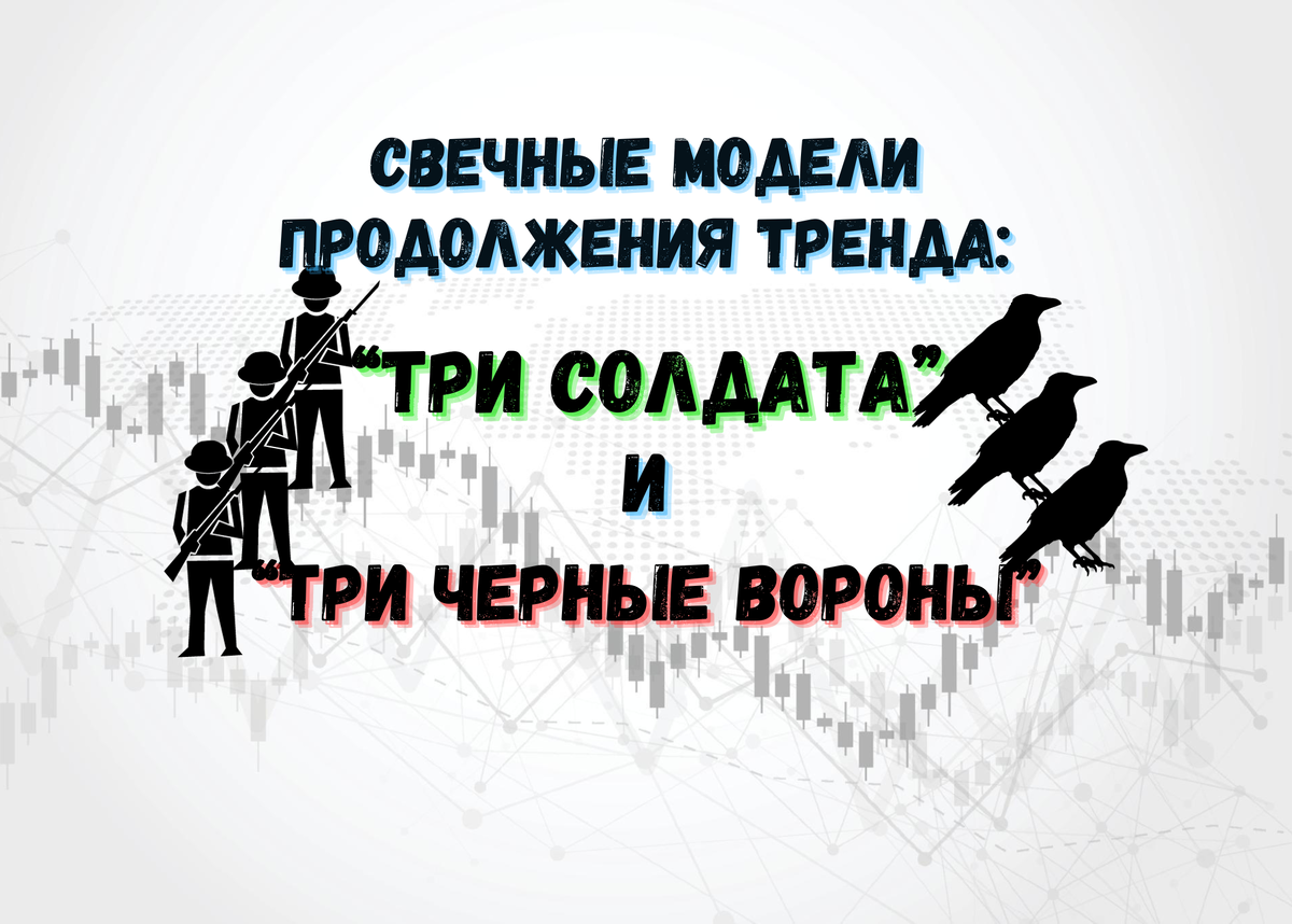 Сегодня разберем паттерны "Три солдата" и "Три черные вороны" - это два различных видов японских свечных паттернов, используемых в техническом анализе на финансовых рынках. Паттерн "Три Солдата" (Three White Soldiers): Этот паттерн - восходящего тренда. Он состоит из трех последовательных зеленых свечей. Вот что каждая из них означает: "Три Солдата" говорят о том, что быки уверенно контролируют рынок и могут вызвать дальнейший рост цен. Паттерн "Три Черные Вороны" (Three Black Crows): Этот паттерн, наоборот, свидетельствует о возможном развороте в нисходящий тренд. Он состоит из трех последовательных красных свечей: "Три Черные Вороны" предупреждают о том, что медведи усиливают свое давление на рынок, и это может привести к дальнейшему снижению цен. Однако важно помнить, что эти паттерны следует использовать в контексте других индикаторов и анализа рынка. Они не всегда гарантируют успешную торговлю и могут давать ложные сигналы. Также не забывайте о контроле риска и управлении капитало