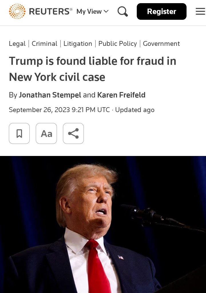 🇺🇸#USA Суд признал Дональда Трампа виновным в мошенничестве⚠️☝️ 💬 Судья Артур Энгорон постановил, что Трамп и его компания несут ответственность за мошенничество. Ранее Трампа обвинили в штурме Капитолия, ненадлежащем хранении секретных документов и выплате порноактрисе $130 тысяч за молчание о сексуальной связи с ней.