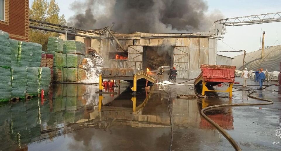 Информация о возгорании поступила спасателям в 09:45. Пожар вспыхнул в отдельностоящем складском здании размерами 20 на 60 метров. Внутри, предположительно, хранятся химвещества, добавили в пресс-службе.