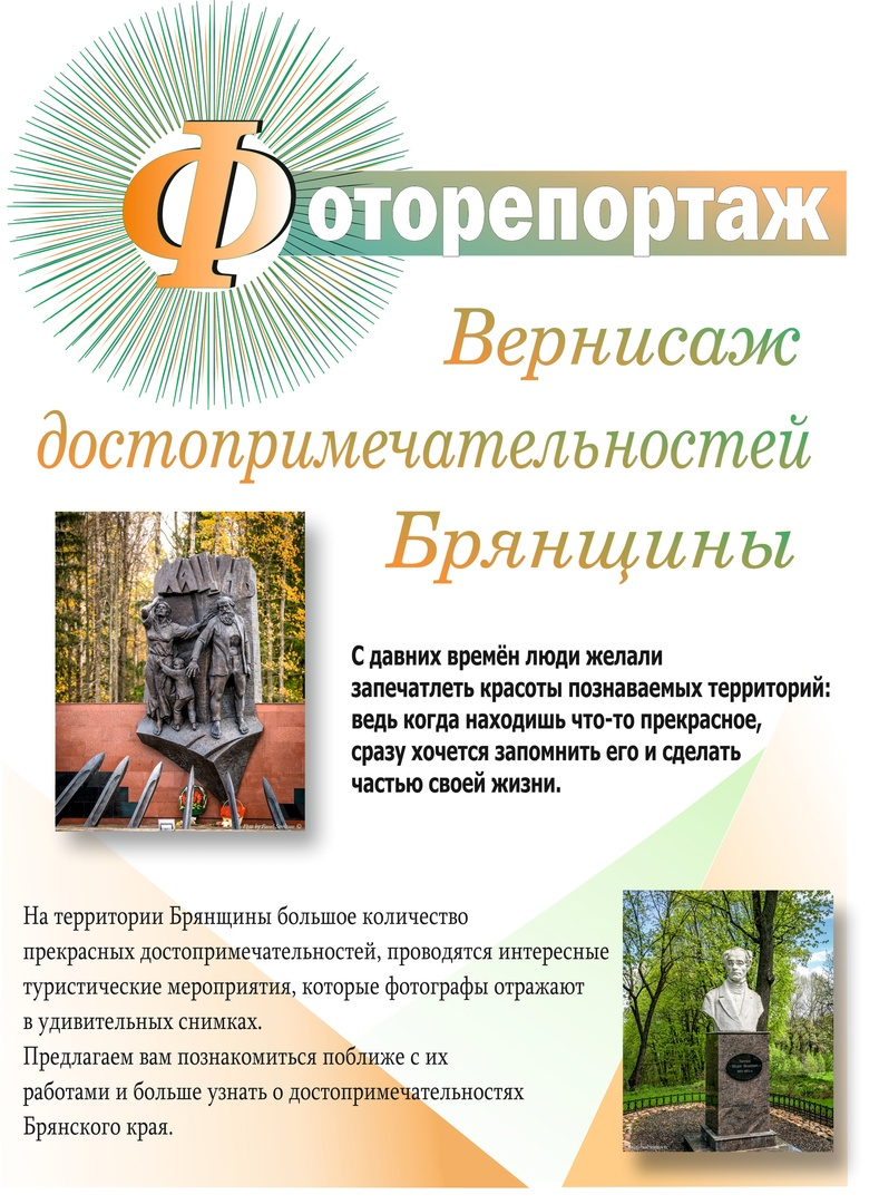 ✨Мы неоднократно знакомили вас с подборками интересных мест и достопримечательностей Брянщины. Сегодня, в честь Всемирного дня туризма, приглашаем в увлекательное онлайн-путешествие «Вернисаж достопримечательностей Брянщины».