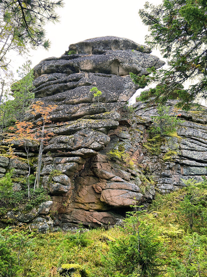 Продолжаю показывать причудливые скалы Койского белогорья. Начало тут: Как мы на мамонта ходили 1. Экспедиция на Койское белогорье.2. Койское белогорье-3. Утром следующего дня мы отправились вверх по холму, где торчали скалы. Мы забирались на них, чтобы оценить обстановку. Оказалось, что самые высокие скалы, что возвышались над холмом - не последние в ряду! За ними тянулись другие скалы, которых мы прежде не видели. Некоторые скалы имеют занятные формы. Выворотень. Эта отвесная стена поначалу смутила нас. С первого взгляда скала показалась неприступной. Со второго взгляда трудной для восхождения. А после третьего взгляда мы взяли и полезли. И забрались на самую макушку! Вот что увидели сверху. Последний шаг на вершину... А вершина оказалась дыроватой! Скалы просто шикарные! Нетронутые! Сейчас мы просто пробежались по холмам, разведочным образом. Теперь нужно нанести скалы на карту, а это гораздо сложнее. Разведкой мы остались довольны! Это ведь рай для скалолазов, художников, фотографо