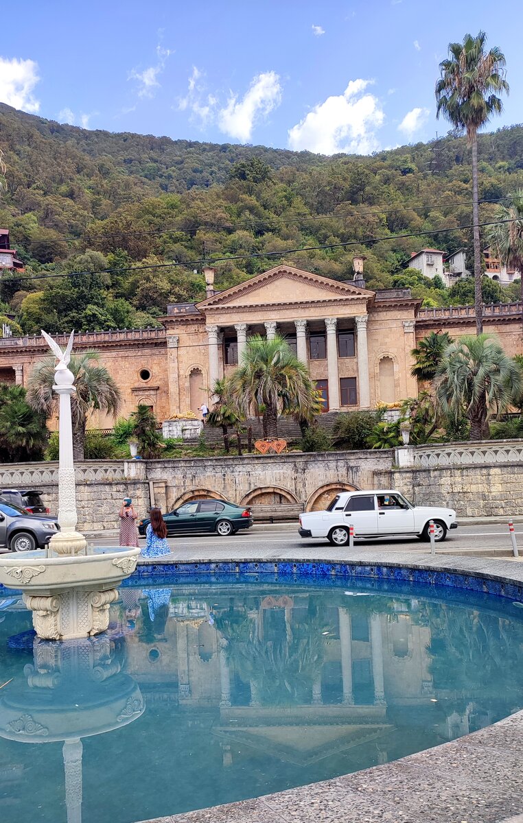 Сегодня расскажу вам про одну из заброшек в Старой Гагре. Думаю, что любой, кто побывал в Гагре, знаком с этим весьма примечательным зданием. Находится оно прямо напротив очень популярной у туристов колоннады. Каждый раз приезжая в Абхазию, я с надеждой жду, что это здание обретет новую жизнь. Из всех заброшек Гагры, почему-то именно эта, вызывает особую грусть. Датируется это здание 1951 годом. В нём когда-то располагался красивейший кинотеатр «Гагра», Зимний театр и Дворец культуры. Театр построен в стиле сталинский ампир, одновременно с колоннадой. Строение монументальное, с центральным входом, оформленным мощными колоннами и двумя боковыми крыльями. По бокам широкой парадной лестницы лежат львы, покрашенные в золотой цвет. Жутко не нравится, что их так покрасили. Даже фоткать не стала. Раньше они были более симпатичные и естественные. Когда-то на двух этажах располагались сцены и три зрительных зала. В зимнее время представления шли во внутренних помещениях, а с наступлением теплог