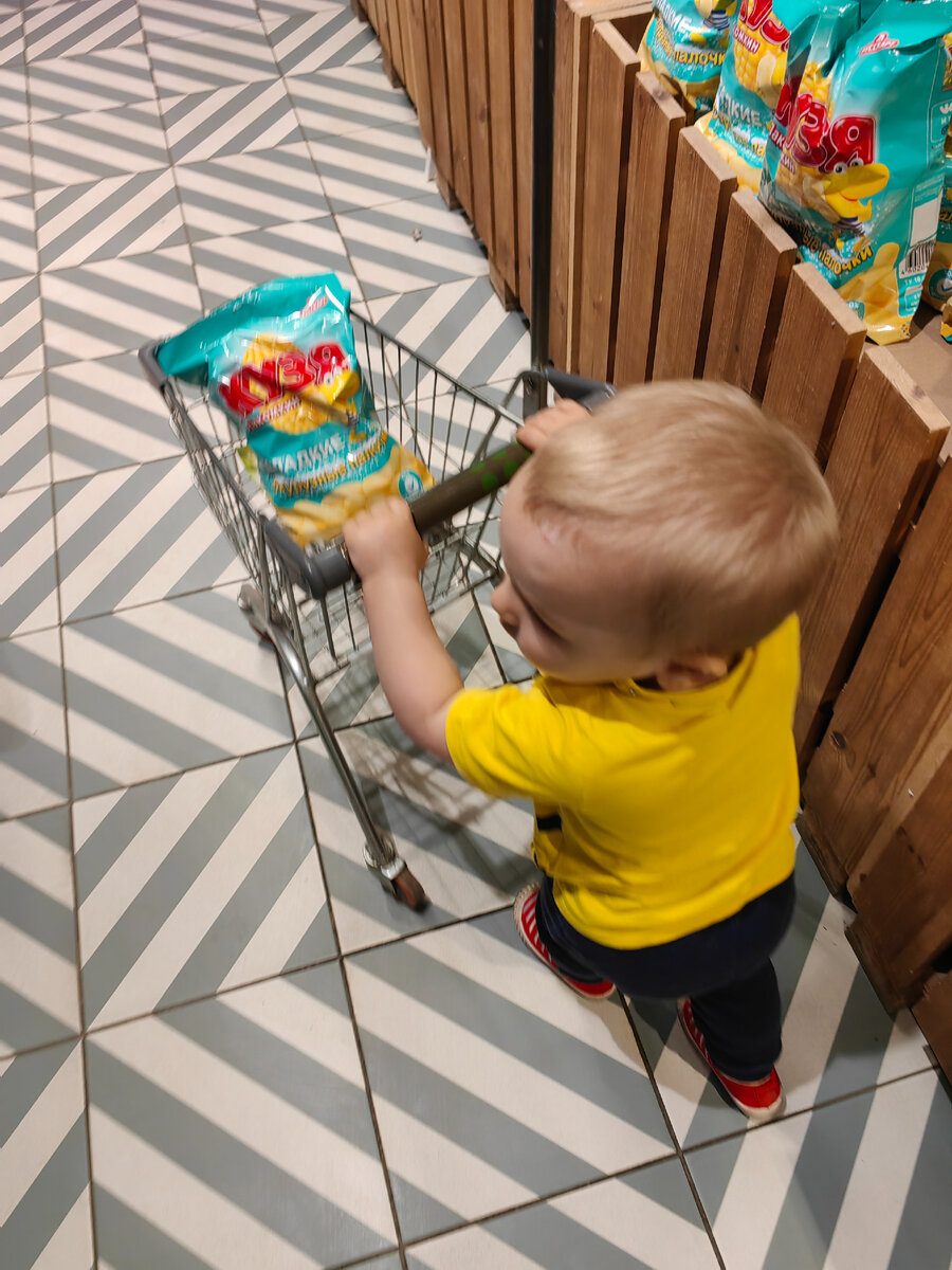 В магазине обычно истерик не бывает ибо я даю ему делать то, что он хочет с ограничениями: выбирать фрукты, купить мелочь. Он сам идёт на кассу. В том же Ашане или Метро я даю ему "пропикивать" покупки. Ему пробивают товар. Он, как взрослый.
