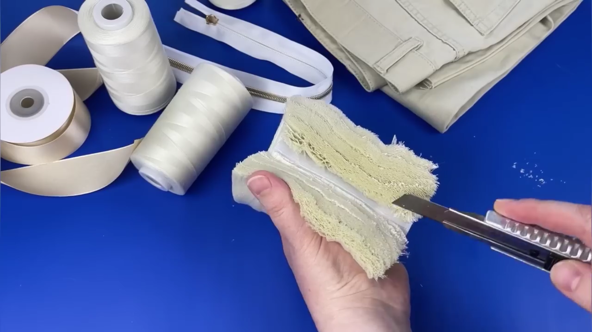 Здравствуйте дорогие друзья! Бывает в жизни такое, что для особого случая нужна сумочка под определенный наряд. К примеру что бы подходила под праздничное платье или туфли. И есть понимание того, что сумочка будет использоваться считанное количество раз. Я не сторонница покупать вещи на один раз, поэтому придумала выход из ситуации. Применив фантазию, придумала сшить сумочку из ниток. И вот как я это сделала. Разрезала канцелярским ножом несколько катушек ниток Разложила их на слои Отрезала кусок атласной ленты шириной 40см Разложила на него нитки и обработала им один край Всего таким образом я обработала 14 полосок А затем отрезала лишнюю длину Далее из ненужных брюк вырезала 2 детали 40 на 35 см. Согнув пополам детали оформила низ деталей фигурной линией Пристрочила к деталям верха полоски с нитками на расстоянии 4см друг от друга Вырезала две детали из подкладочной ткани Наложила детали верха лицом друг к другу и прострочила их. То же сделала с деталями подклада. Вложила подкла