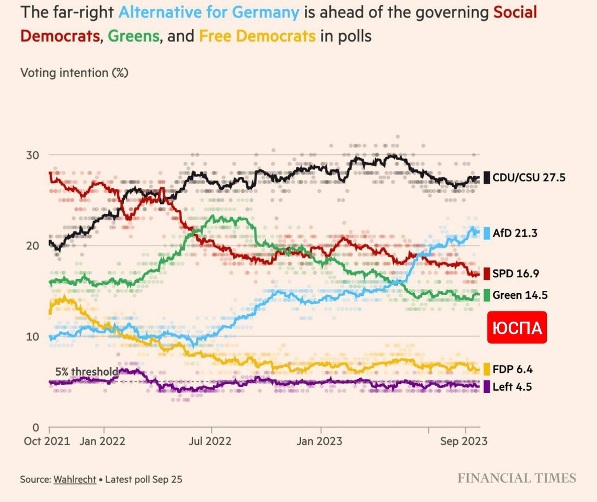 ЮСПА / Главное. Ультраправая "Альтернатива для Германии" лидирует в опросах