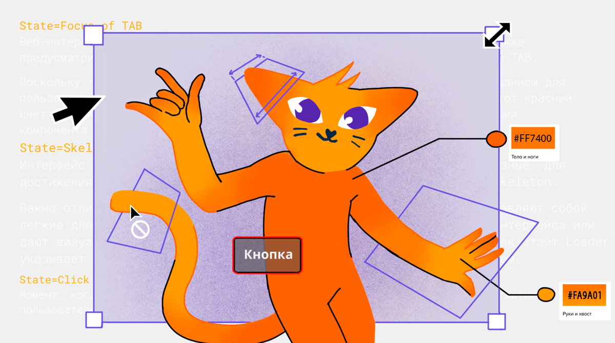 Наш продукт — это веб-интерфейс, поэтому главным элементом управления мы считаем курсор. Они могут отличаться у разных типов компонентов, например, при наведении курсора на форму он должен быть одним, а на кнопку — другим