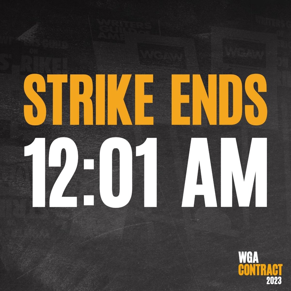 Забастовка сценаристов закончится в 12:01 am в среду по Лос-Анджелесу. Переговорный комитет, правление WGA West и Совет WGA East единогласно проголосовали за то, чтобы рекомендовать соглашение, и теперь за соглашение будут голосовать уже члены гильдии. Голосование пройдет со 2 по 9 октября. Соглашение действует с 25 сентября 2023 по 1 мая 2026, и сценаристы могут вернуться к работе пока идет голосование. Забастовка длилась 148 дней!