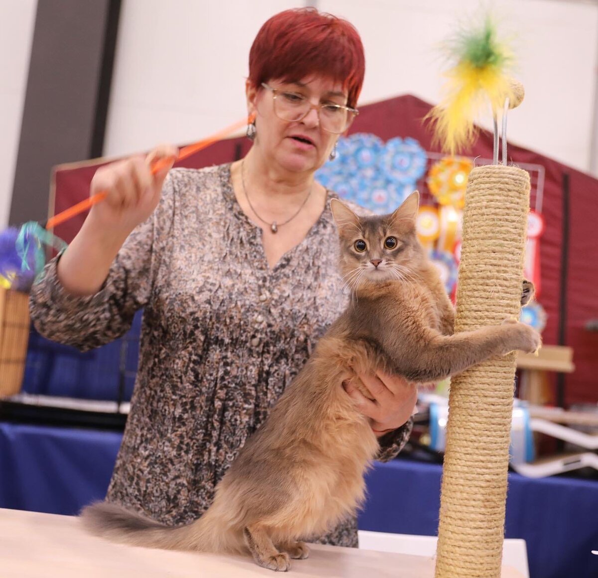 Еще один способ – игровой: возьмите дразнилку/махалку и поиграйте ею с кошкой по поверхности когтеточки.