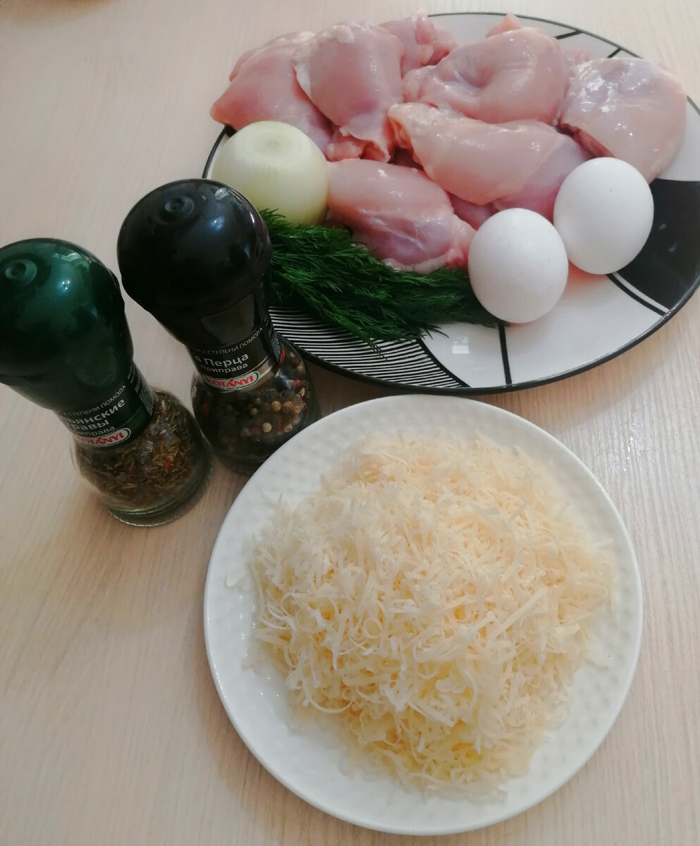 Всем привет! Сегодня приготовим рубленые куриные котлеты, а чтобы они были более сочными, я буду использовать филе куриных бёдер. Нам понадобится 800 гр.филе, одна луковица, 2 яйца, небольшой пучок зелени, которую вы любите (у меня укроп), немного тёртого сыра или кусочек сливочного масла, кому как нравится, соль, перец, ложка майонеза, ложка крахмала, растительное масло для жарки. Куриное филе тщательно промываем, обсушиваем бумажным полотенцем и нарезаем произвольными кусочками, чем меньше кусочки, тем сочнее будут котлеты. Лук нарезаем мелким кубиком, зелень тоже режем очень мелко. К мясу добавляем лук, зелень, вбиваем яйца, добавляем сыр, крахмал и ложку майонеза. Солим, перчим и тщательно всё перемешиваем. Если есть время, можно оставить смесь в холодильнике на час, так котлеты будут лучше держать форму, но можно сразу приступить к жарке. На сковороду с разогретым маслом ложкой выкладываем фарш и жарим с двух сторон на среднем огне примерно по 10 минут. Котлеты можно подать