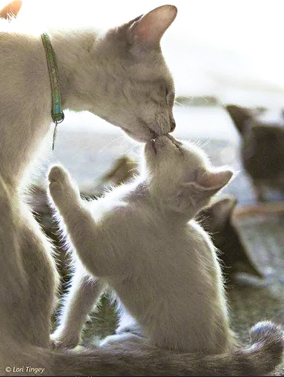 Она легла рядом, свернувшись вокруг слабого крохотного комочка белой шерсти... Голубые глаза котенка были прикрыты, весь он слегка дрожал, только задние лапки его безжизненно лежали на полу. Мия нежно замурлыкала, голос ее переливался, словно журчащий говорливый ручей, розовый язык заходил туда-сюда по холке.