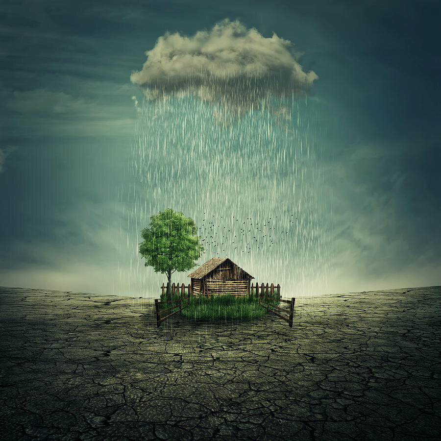 — Вот, — показала женщина небольшой бревенчатый дом, единственный во всей округе, над которым стояла черная туча и поливала нескончаемым дождем.