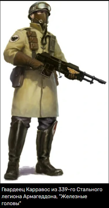 Самые известные и прославленные из немногих редких мотопехотных полков в Империуме - это те, которые были основаны в Мире-улье Армагеддон. В то время как некоторые формирования Астра Милитарум полагаются на лошадей или других подобных обычных скакунов, Стальные легионы Армагеддона отправляются в бой как конная пехота в корпусах своих надежных бронированных транспортных средств "Химера".