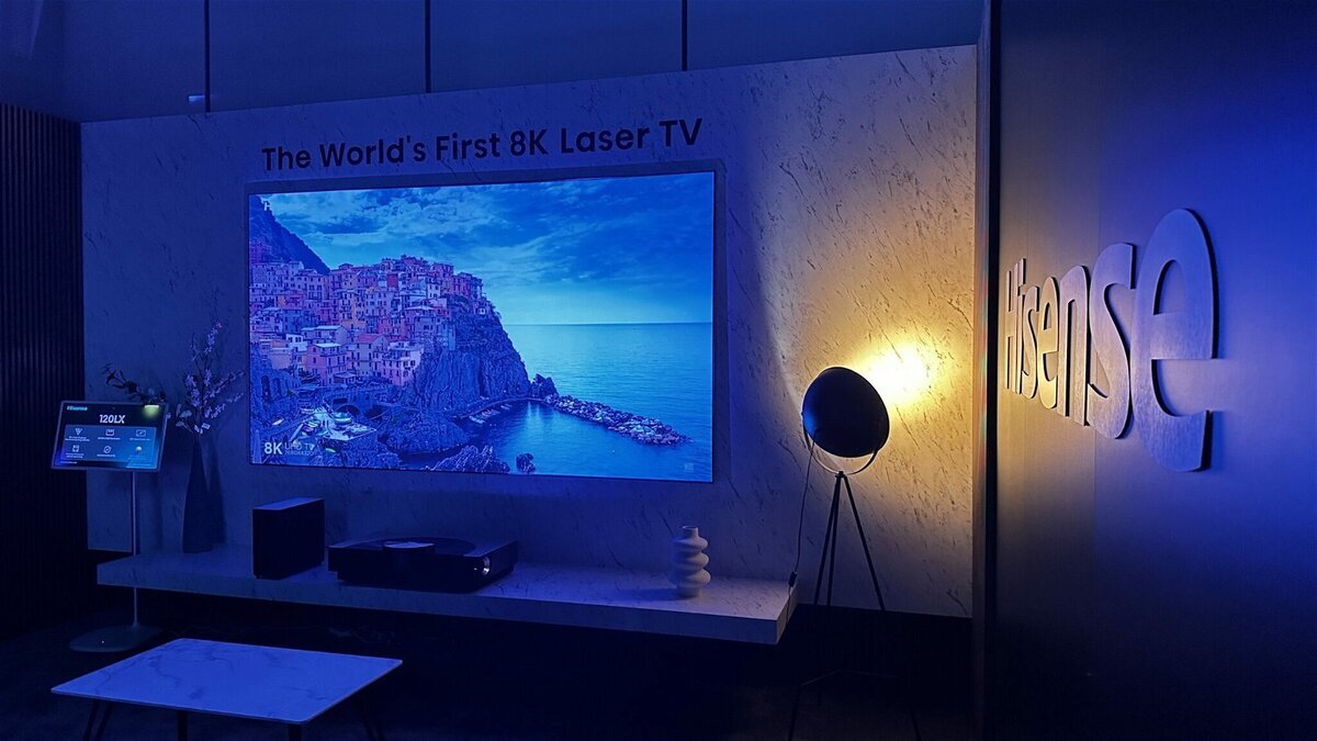 Кроме того, Hisense показала ультракороткофокусный лазерный проектор премиум-класса Hisense PX3-PRO. Он выводит яркое изображение до 130 дюймов в формате 4K с близкого расстояния – всего 35 сантиметров между консолью и экраном.