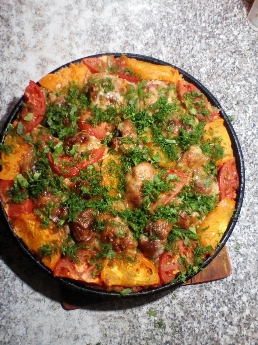 Времени катастрофически не хватает, решила сделать на ужин рис с куриными кусочками в духовке.. Обалдеть как вкусно!!! Смешала лук обжаренный с ложкой том.пасты, перец порезанный кусочками, морковку брусочками, соль, приправы положила всё на противень, сверху выложила кусочки курицы, залила все куриным бульоном, можно водой, из соотношения один объём риса два объёма воды. Поставила в духовку на 180гр пока рис не впитал воду. Достала, смазала курочку смесью: майонез, соевый соус, горчица и чеснок, свободные места заложила дольками помидор и снова в духовку до подрумянивая курочки. Сверху посыпать зеленью. Приятного аппетита!!! Готовьте с удовольствием и у вас всё получиться!!!! От Татьяны с любовью 💞💞💞