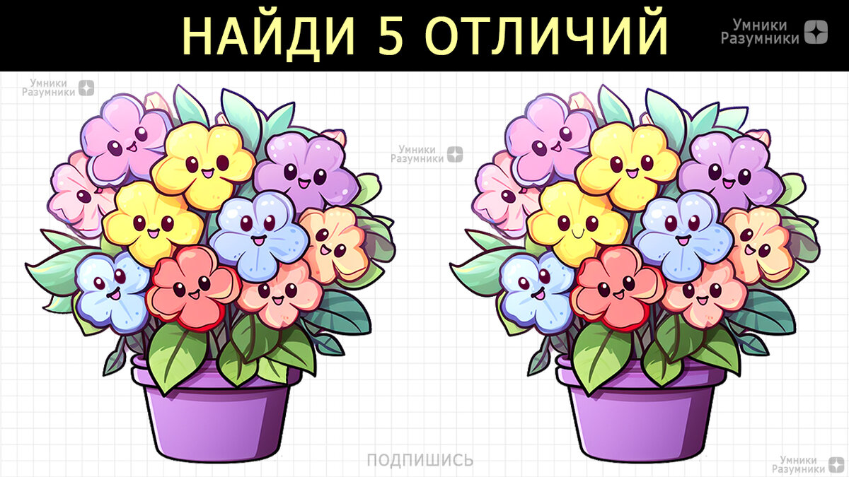 Приветствуем всех читателей на Дзен канале Умники Разумники. Перед Вами очередная подборка заданий для приятного досуга и разминки ума 😉 Что ж, давайте скорее приступим ✌️ 1. Найди 5 отличий между двумя изображениями с цветами 2. Во втором задании несколько слов мы для Вас "зашифровали" методом перестановки отдельных букв или слогов в слове. Попробуйте верно составить эти слова: 1. ЕИИДЛНЕВУ 2. ФТМААСЕРО 3. ТННЕИОСАРЕ 4. ЕЛЧТСОИОКВ 5. СТИСЦЛАЕИП 6. АСБЬТОЛ 7. ИОЯСФЛФОИ 8. АРОЫНМСТЬ 9. ВЬЕСТООСБТЛЯОТ 10. БЕСНЗИ 3. Всего один домик отличатся. Какой из десяти? 4. Какое число отличается? Среди чисел "33221", есть всего одно лишнее. Попробуйте найти, что это за число и в каком оно находится ряду : 😎 Если не еще устали - несколько наших прошлых выпусков: