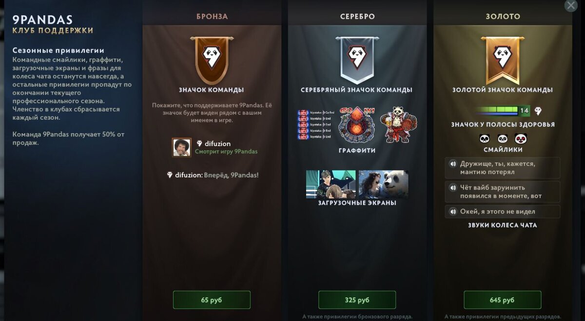 Смотрим. Вместе с Компендиумом в Доте появились новые бандлы команд – специально для The International 2023. Мы собрали самые интересные наборы команд. Разыгрываем пять компендиумов в нашей телеге! Нужно только подписаться В Доте вышел Компендиум! Внутри – бинго, прогнозы и новые награды 9Pandas Гениальный загрузочный экран со взглядом Рамзеса, на втором – Мирана с большущей пандой (ну кто сомневался), а еще неплохие стикеры. Фразы необычные, но вряд ли завирусятся: Дружище, ты, кажется, мантию потерял Чет вайб заруинить появился в моменте, вот Оке-е-ей, я этого не видел Team Spirit Команда продолжает ностальгию по старым интерфейсам и шутит над хозяином леса – Коллапсом. Фразы: Опа-а, это что за пассажир? Тише, мальчик Тяжелая жизнь саппорта Gaimin Gladiators Прекрасный загрузочный экран с Дурачье и его фирменным «Дауби, Дауби». А еще милые стикеры и ламповый второй загрузочный экран. Во всех трех фразах голос Дурачья – он очень постарался: Сегодня я не в форме Наш! Это наш шанс! Это